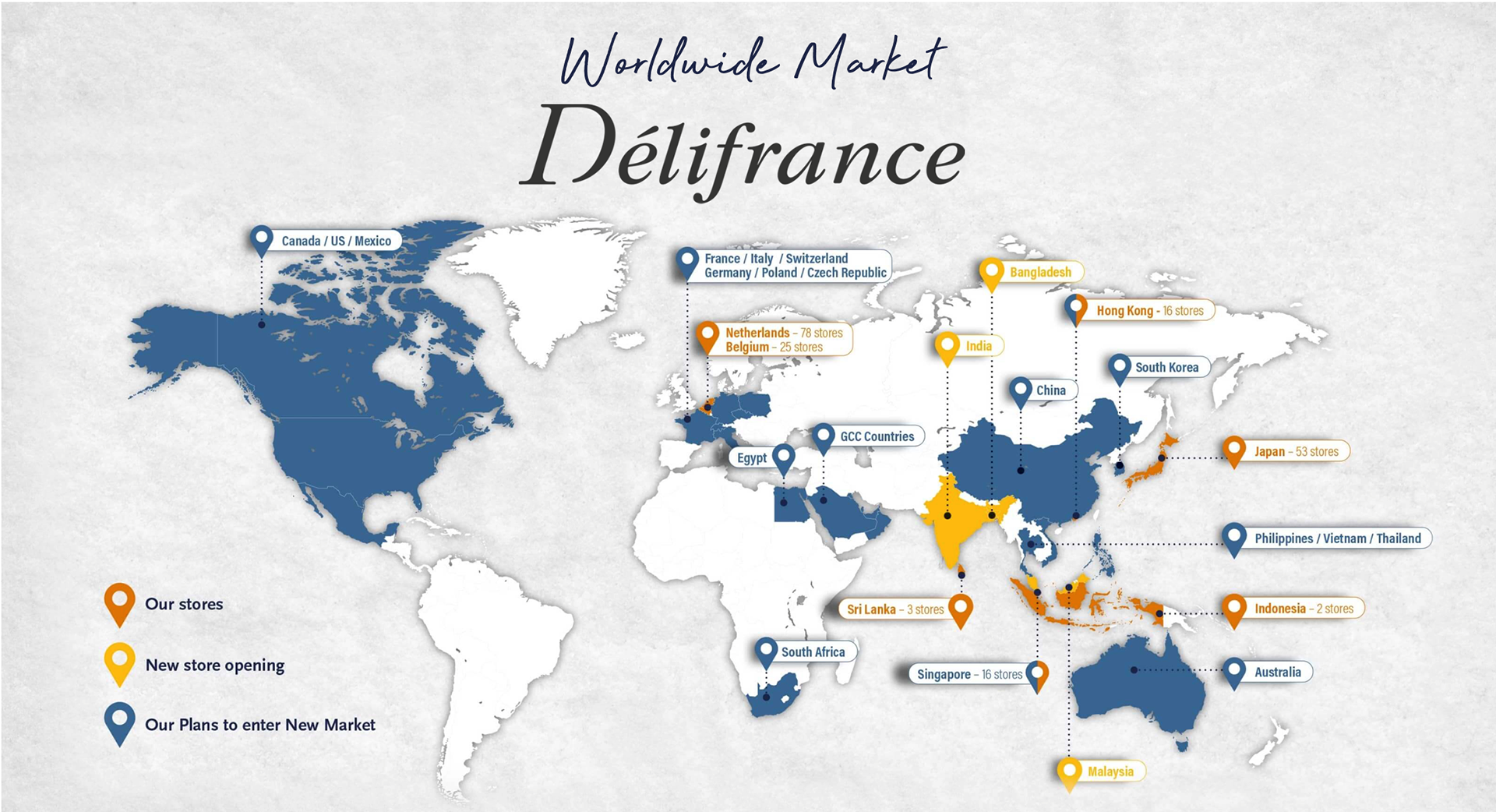 Délifrance heeft vestigingen in Europa, Azië, het Midden-Oosten en Afrika en behoort daarmee tot een van de grootste internationale spelers binnen de wereldwijde bakkerijmarkt.
